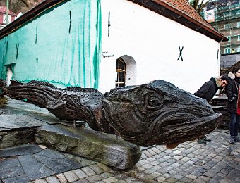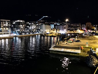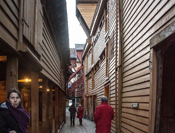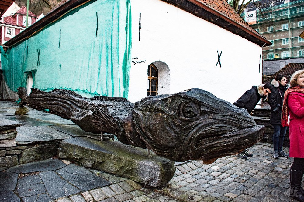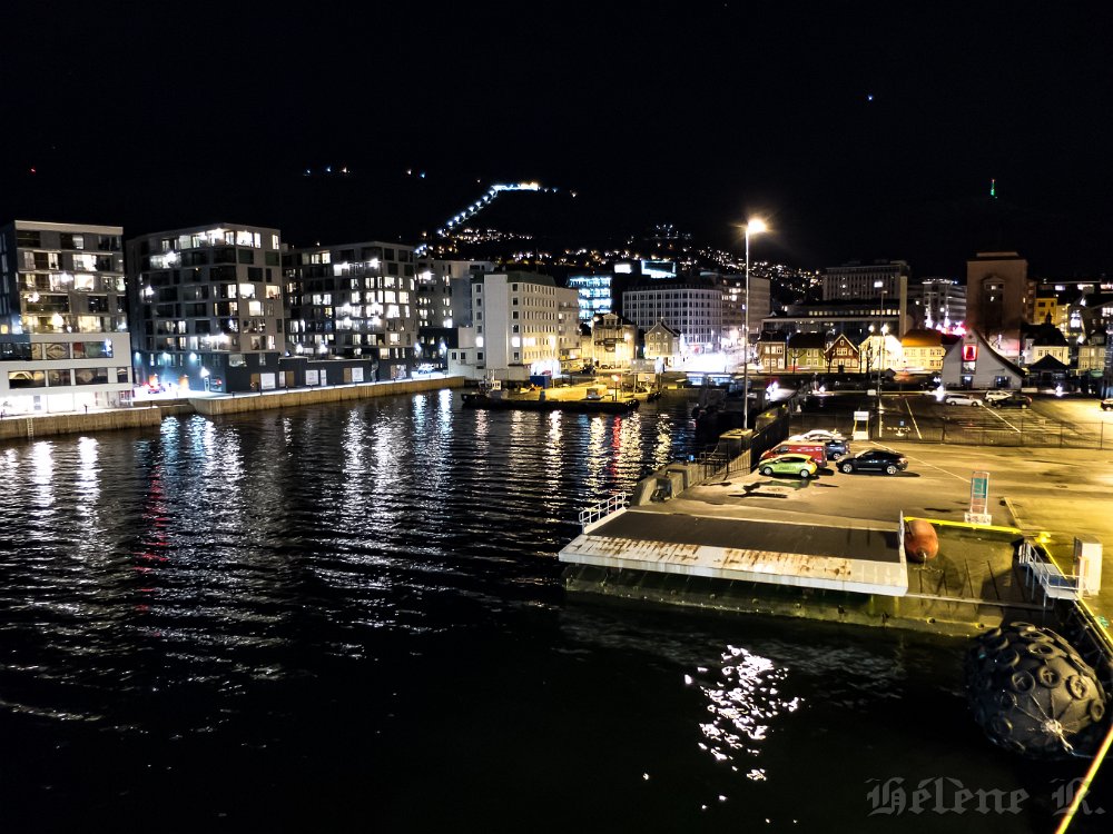 Norvège, février 2016, en route pour les aurores... BergenVisite de l'ancienne ville Ici tout est en bois, même les ruesIl y a des maisons et de petits immeublesIci un cabillaudBeaucoup de lumière le soir, sur le portMais le ciel est malgré tout bien visibleNotre bateau, le NordlysSa salle à manger